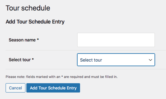 Puedes crear tantas entradas de horario como necesites para cada tour. Cada entrada debe incluir: